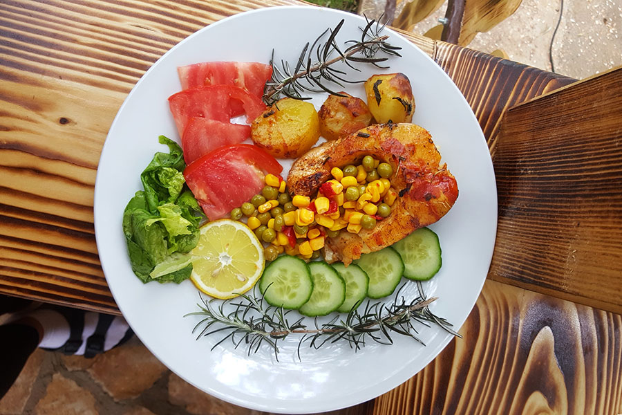 Kao prilog: svježi krastavci, meksički mix, rajčica i zelena salata.