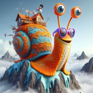 Galeb was no ordinary snail. He wore glasses that gave him a wise look, and his eyes, large and expressive, gazed into the distance, dreaming of the adventures that awaited him. His home was more than a shell; it was a magical little house with a wooden roof, filled with technological wonders, from satellite dishes to antennas that caught the songs of the stars.