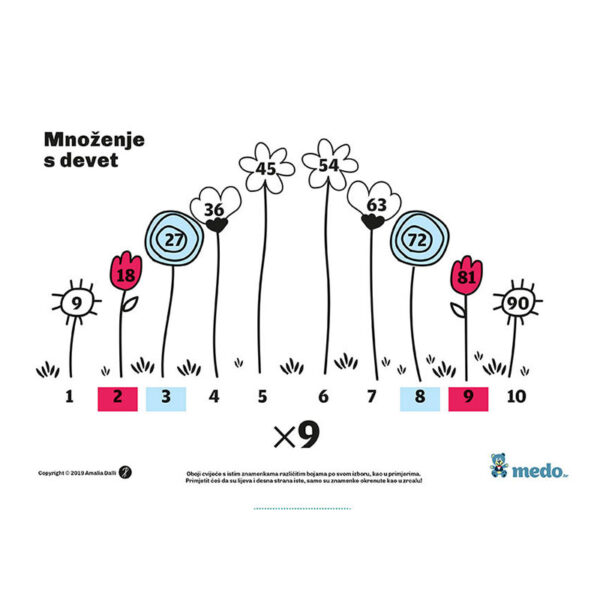 5..10..15..20.. Samo prati Medinu kazaljku i svaki puni sat postaje umnožak broja 5. Jednostavno zar ne! 🙂Medo 7×9